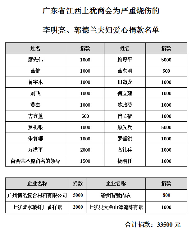 廣東博皓復合材料有限公司得知消息后,特批從公司愛心基金里捐出5000元,董事長賴厚平個人捐出5000元。