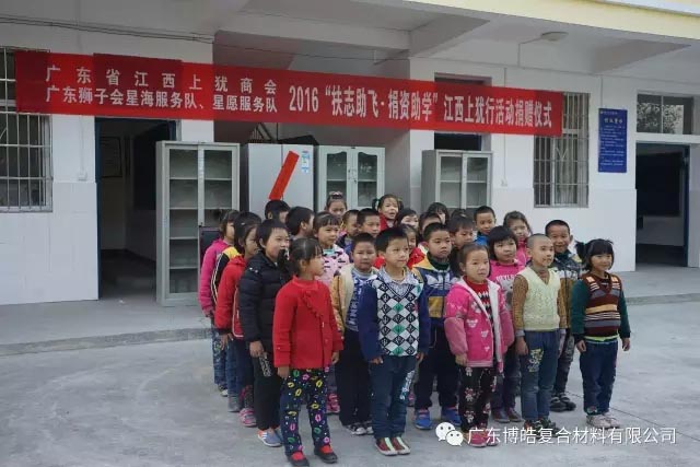 捐贈儀式上,廣東江西上猶商會會長、廣東博皓復合材料有限公司董事長賴厚平先生向陡水中心小學、平富中心校和營前鎮石溪小學等學校贈送了課桌、學習用品、電腦設備等教育教學物資及助學金,在講話中,賴厚平先生勉勵同學們勤奮學習、自強不息,把暫時的艱苦作為成長生活中的磨煉和精神財富的積累,把感激之情化為成才之志,發奮之源,用優異的成績回報社會。